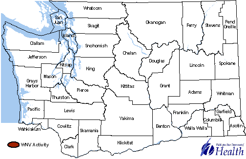 West Nile Virus Detections in Washington, 2024 County Human, by County of Likely Exposure Human, by County of Residence Horse/Other Mammal Bird Mosquito Sample King 0 1 0 0 0 Yakima 0 0 0 0 10 Multi-county Exposure* 0 In-state Acquired 0 Out-of-state Acquired 1 Unknown Exposure Location ** 0 Total 1 1 0 0 10 * "Multi-county Exposure" represents human cases that had potential exposure in more than one county.