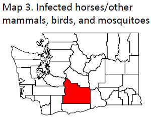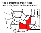 Map 3. Infected horses/other mammals, birds, and mosquitoes