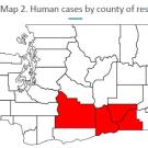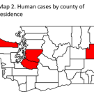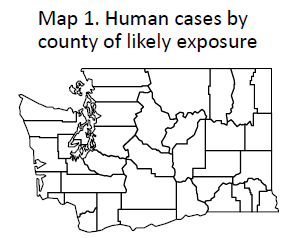 ** "Unknown Exposure Location" represents human cases that had potential exposure in other states or countries in addition to Washington State. These cases are notshown on Map 1. Human Cases by County of Likely Exposure.