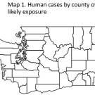 ** "Unknown Exposure Location" represents human cases that had potential exposure in other states or countries in addition to Washington State. These cases arenotshown on Map 1. Human Cases by County of Likely Exposure.
