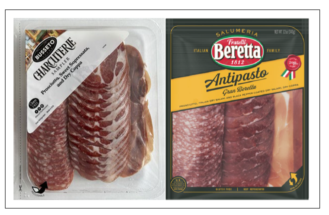 - Fratelli Beretta Antipasto Gran Beretta vendido por Costco. Este producto contiene salami recubierto de pimienta negra, salami seco italiano, coppa seco y prosciutto y se vende en paquetes de dos unidades.