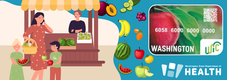El Programa de Nutrición en Mercados Agrícolas de WIC es parte del Special Supplemental Nutrition Program for Women, Infants, and Children (Programa Especial de Nutrición Suplementaria para Mujeres, Bebés y Niños [WIC]) que funciona a través del Departamento de Salud del Estado de Washington.