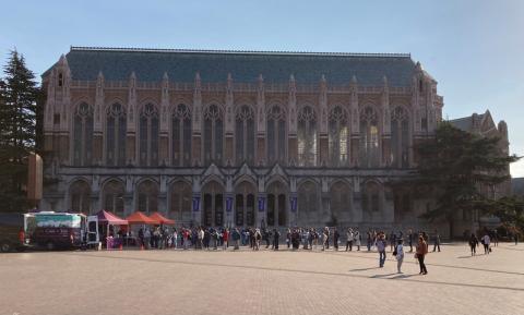 In the fall of 2022, DOH’s Care-A-Van Mobile Health Services team administered COVID-19 vaccinations at 35 campus events at colleges and universities across Washington state. With "Walk-ups Welcome" signs in front of the pop-up clinics, students expressed their appreciation for the ease of being able to get their booster in between classes and not have to leave campus to do it.