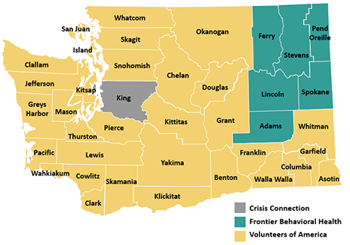 Ang Washington ay may tatlong sentrong pangkrisis para sa 988 Lifeline na sumasagot sa mga tawag, text, at chat mula sa buong estado: