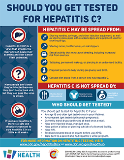 This short handout informs the general population how hepatitis C spreads and does not spread, who should get tested, and why it is important to get tested and treated.