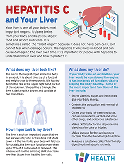 This two-page fact sheet is adapted from information compiled by the Hepatitis B Foundation. It provides important information about the liver, the impact hepatitis C has on this vital bodily organ, and how to prevent and treat hepatitis C.