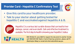 - Provider Card - Hepatitis C Confirmatory Test - English (PDF) Print version (double-sided, 8 cards per page)