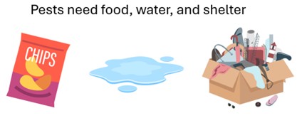 - All pests need water. Fix leaks. Make sure water drains away from the school.